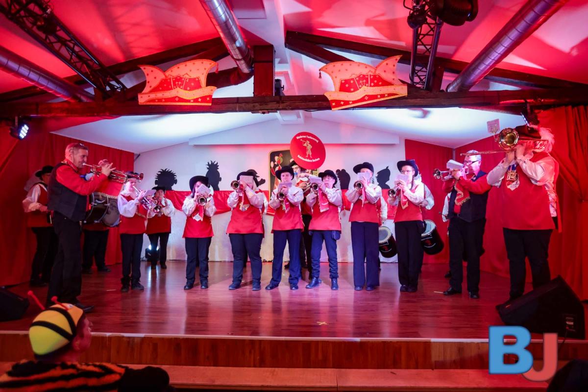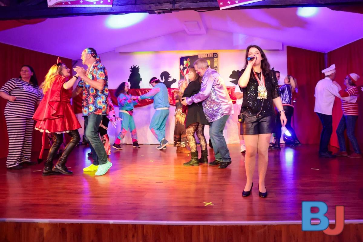 Durch den Abend führten Michael und Dirk, die es sich nicht nehmen ließen, eine kleine Neuerung zu verkünden: „Wir wollen moderner werden. Daher spielt unser Fanfarenzug zum Ausmarsch.“ Und auch sonst wurde den 150 Gästen im Vereinsheim einiges geboten – von Tanzmariechen über Männerballett bis hin zu humorvollen Einlagen.