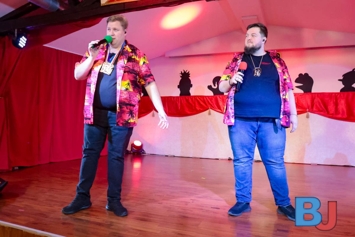 Natürlich kam auch der Humor nicht zu kurz. Die Henkelmännchen – Rainer Moll und Sebastian Kock – waren extra aus Köln angereist, um mit ihrem Auftritt das aktuelle Zeitgeschehen aufs Korn zu nehmen. Besonders ihre Versuche, Kölsch zu sprechen, sorgten für Lacher im Publikum, das die rheinische Fröhlichkeit dennoch schnell annahm. Das Duo beleuchtete mit viel Witz die Energiekrise und animierte die Gäste zum Mitsingen.
