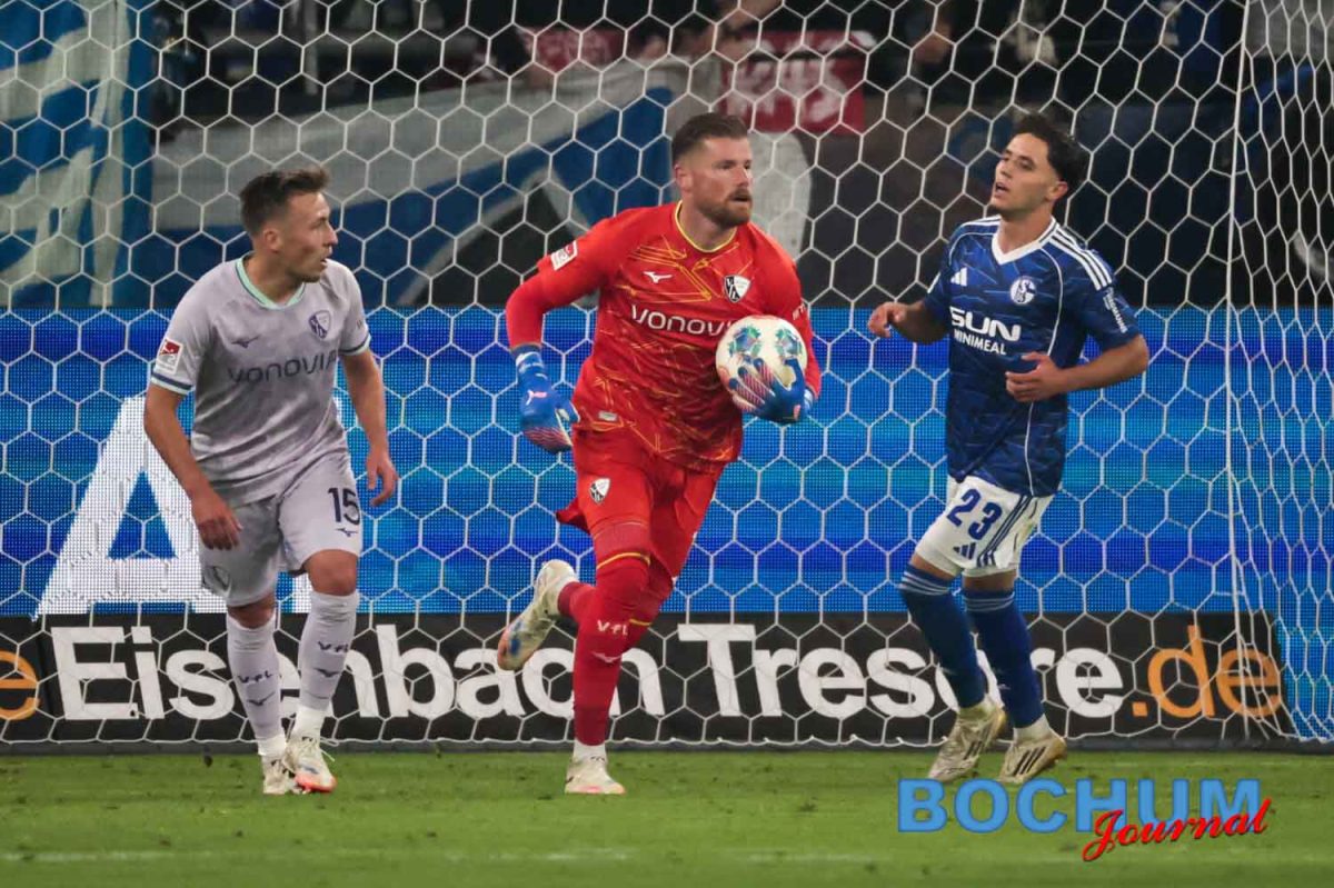 Ein paar Minuten später wurde vor dem Schalker Tor der Bochumer Hofmann gerade noch von Kuracay geblockt. Allerding nur durch ein Handspiel. Der VAR griff ein und Schiedsrichter Willenborg zeigte anschließend auf den Punkt. Den flach unten rechts geschossenen Strafstoß von Vogt parierte aber Karius im S04-Tor in der 25. Minute stark. Es blieb beim 0:0, die Veltins-Arena tobte. Bochum verpasste es, sich für ein couragierte Auswärtsleistung früh zu belohnen und vergab (nach Beros vergebenen Elfmeter im DFB-Pokal) bereits den zweiten Elfmeter in Folge.