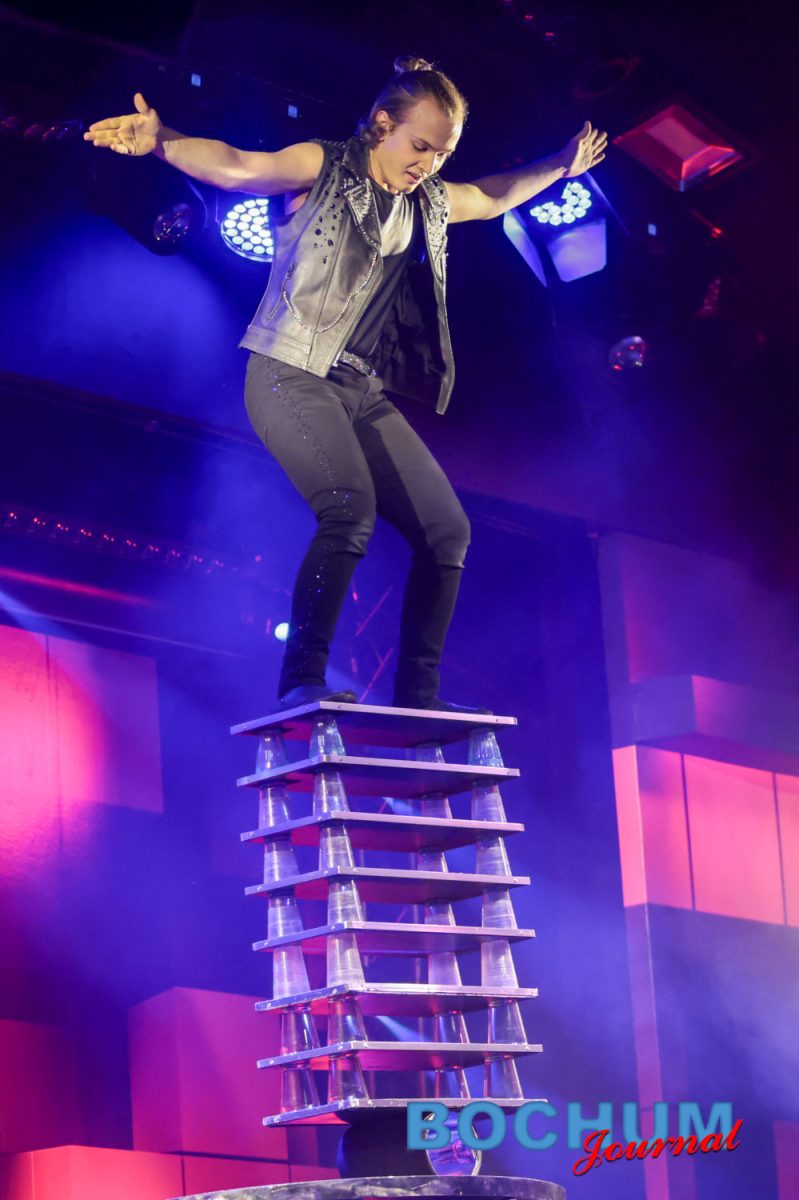 Für atemberaubende Momente sorgen internationale Artistinnen und Artisten. Das Trio Bokafi kehrte nach mehreren Jahren zurück und präsentierte eine kraftvolle Darbietung auf dem Schleuderbrett. Leona faszinierte mit einer präzisen Hula-Hoop-Performance, bei der bis zu 30 Reifen gleichzeitig in Bewegung blieben. Der Belgier Joachim Vlerick überzeugte mit einer beeindruckenden Rola-Bola-Nummer, bei der er sich auf wackelnden Rollen immer weiter in die Höhe arbeitete.