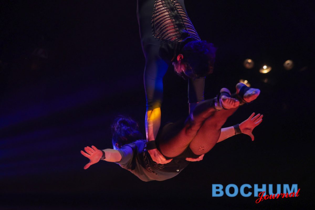 Mit beeindruckender Körperbeherrschung zeigte Marianna Mala, dass Beweglichkeit keine Grenzen kennt – ihre Kombination aus Kontorsion und Multiropes verband Eleganz und Spannung. Der Shadow Juggler brachte eine moderne Note ins Programm: Seine Jonglage mit bis zu fünf Basketbällen war präzise choreografiert und durch Licht- und Schatteneffekte eindrucksvoll in Szene gesetzt. Zum emotionalen Höhepunkt wurde der Auftritt des Duos Charisma, das mit Partnerakrobatik und Trapezkunst Vertrauen, Kraft und Harmonie verkörperte. Ihre Darbietung verband artistische Präzision mit poetischen Momenten.