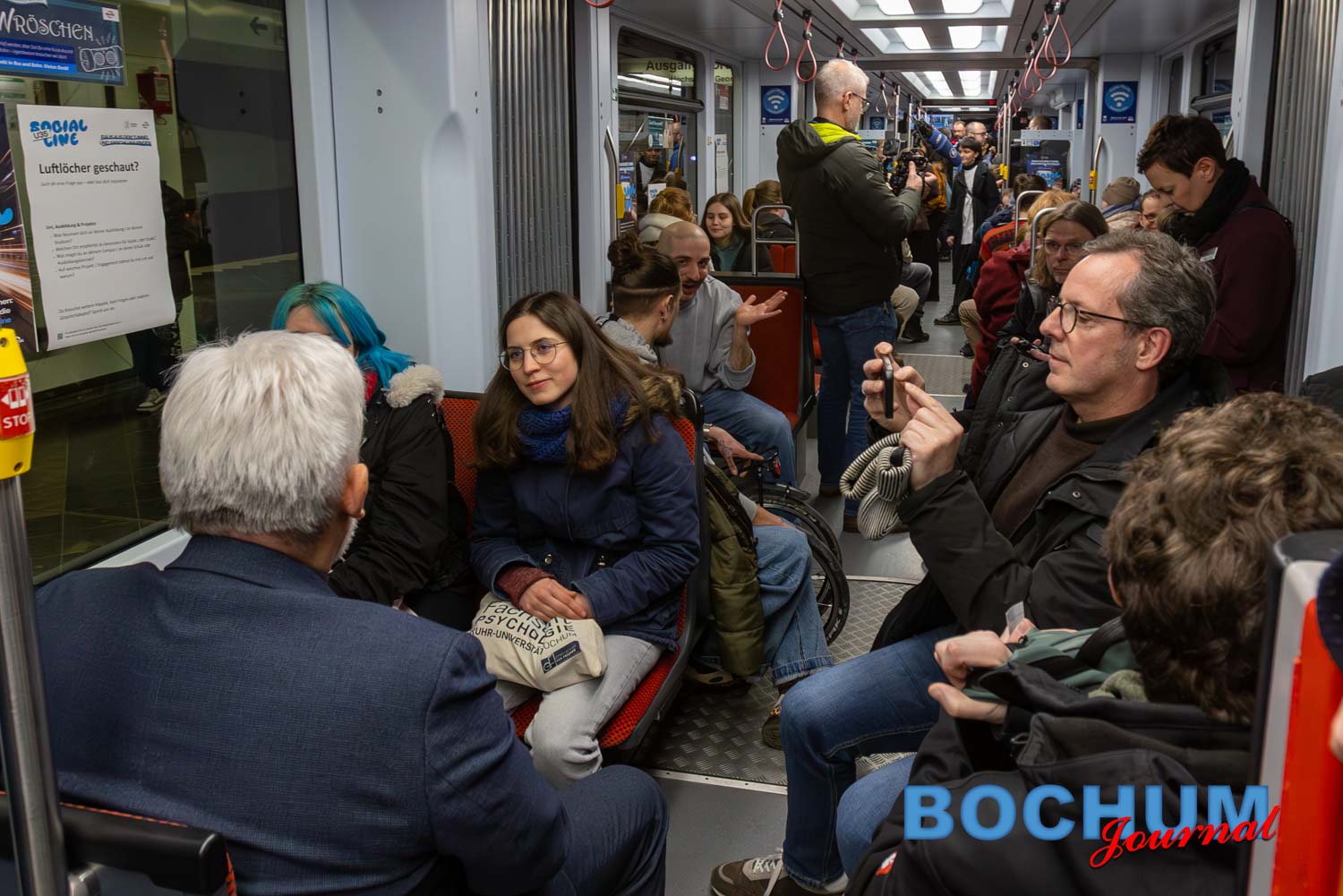 Eine vollkommen ausgebuchte U-Bahn ist am Donnerstagabend gleich mehrfach zwischen Riemke und Hustadt unterwegs gewesen. Anlass war der Start der sogenannten „U35 Social Line“. Organisiert wurde das Projekt vom Verein „Vereint Bochum“. Ziel ist es, Begegnungen zu ermöglichen und Einsamkeit entgegenzuwirken. Das Angebot richtet sich vor allem an junge Erwachsene, Studierende und Berufseinsteiger, die neu in Bochum sind oder ihre sozialen Kontakte erweitern möchten. Eine Teilnahme ist kostenlos. Die erste Fahrt stieß auf großes Interesse bei Teilnehmenden, Stadt und Medien.